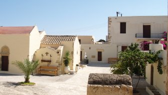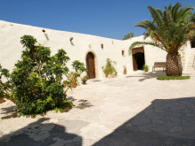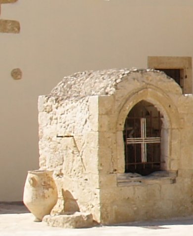 | Δίπλα από αυτό υπάρχει η είσοδος ενός υπόγειου δωματίου που λεγόταν τυροκέλλι γιατί σ’ αυτό φυλάσσονταν τα τυριά του μοναστηριού.Στον χώρο που καταλάμβαναν η αποθήκη και το πατητήρι βρίσκεται σήμερα η τραπεζαρία. Όλo τον υπόλοιπο χώρο του περιβόλου καταλαμβάνουν τα κελιά των πατέρων. |