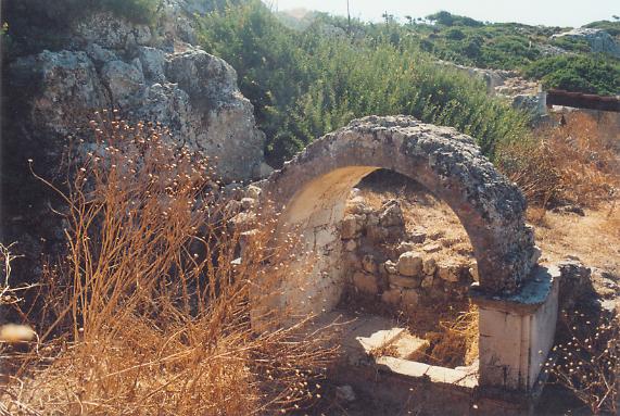 Στην ίδια περιοχή υπάρχουν τα ερείπια της εκκλησίας του μοναστηριού που είχε κτίσει ο Άγιος Ιωάννης ο Ξένος τον 10ο μ.χ. αιώνα προς τιμήν των Αγίων όταν ανακάλυψε τους τάφους τους. Το μοναστήρι φέρεται να καταστράφηκε την εποχή του μεγάλου Κρητικού Πολέμου (1645-1669) οπότε και οι μοναχοί του κατέφυγαν στην μονή Οδηγήτριας.